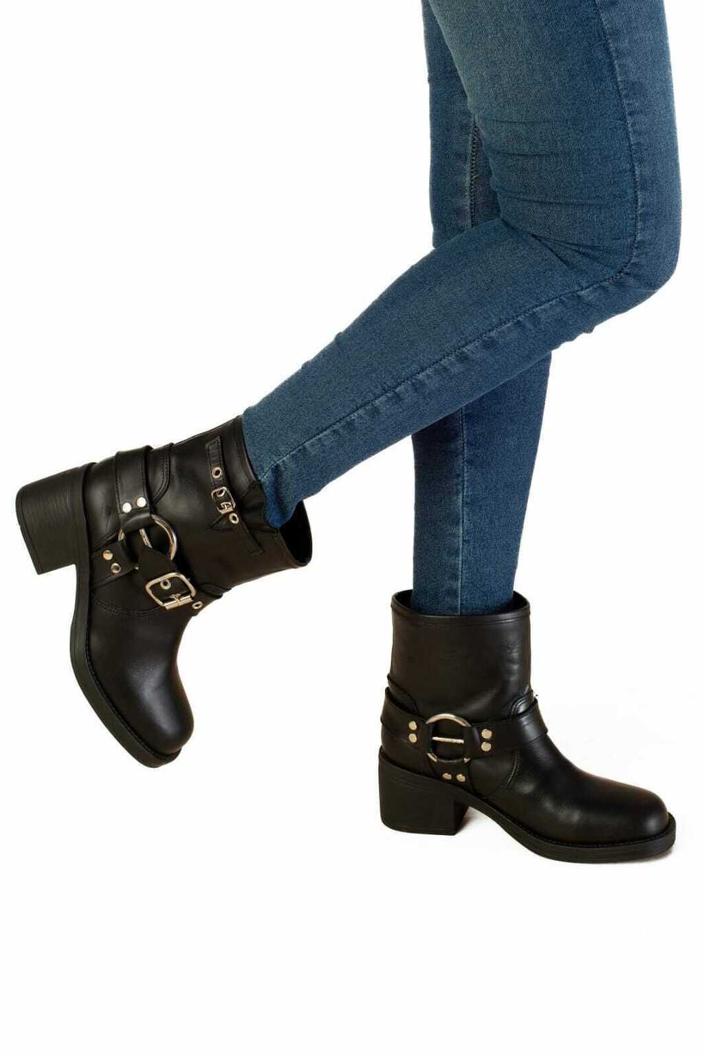 Borcego tendencia con aplique de estribo y hebillas. Base de goma antideslizante ultraliviana de 4,5cm de altura.